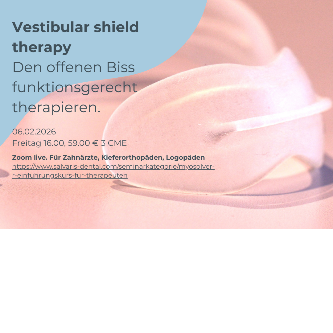 § Im Rahmen der systematischen kieferorthopädischen Therapiein Kombination oder alternierend mit den Maßnahmen der Behandlungsalgorithmen,z.B. mit Alignern, MBA (Brackets), herausnehmbaren Apparaturen (Gerät ohne Labialbogen), bimaxillären Apparaturen (Gerät ohne Labialbogen). Zur Anwendungbei frontal offenem Biss, proklinierten Schneidezähnen, Unterkiefer-Rücklage, myofunktioneller Störung, orofaziale Dysfunktion, Parafunktionen und Dysfunktionen der Zunge, der Wangen und der Lippen, bei transversal unterentwickelten Zahnbögen („Fränkel-Effekt“), bei Zwangsbiss zur Rehabilitation der physiologischen Unterkieferposition.